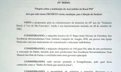 Decreto de Dom Francisco Canindé Palhano instituindo o “Ano Jubilar da Rural FM”.