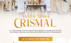 Santa Missa Crismal será celebrada na Quinta-feira Santa, 28 de março