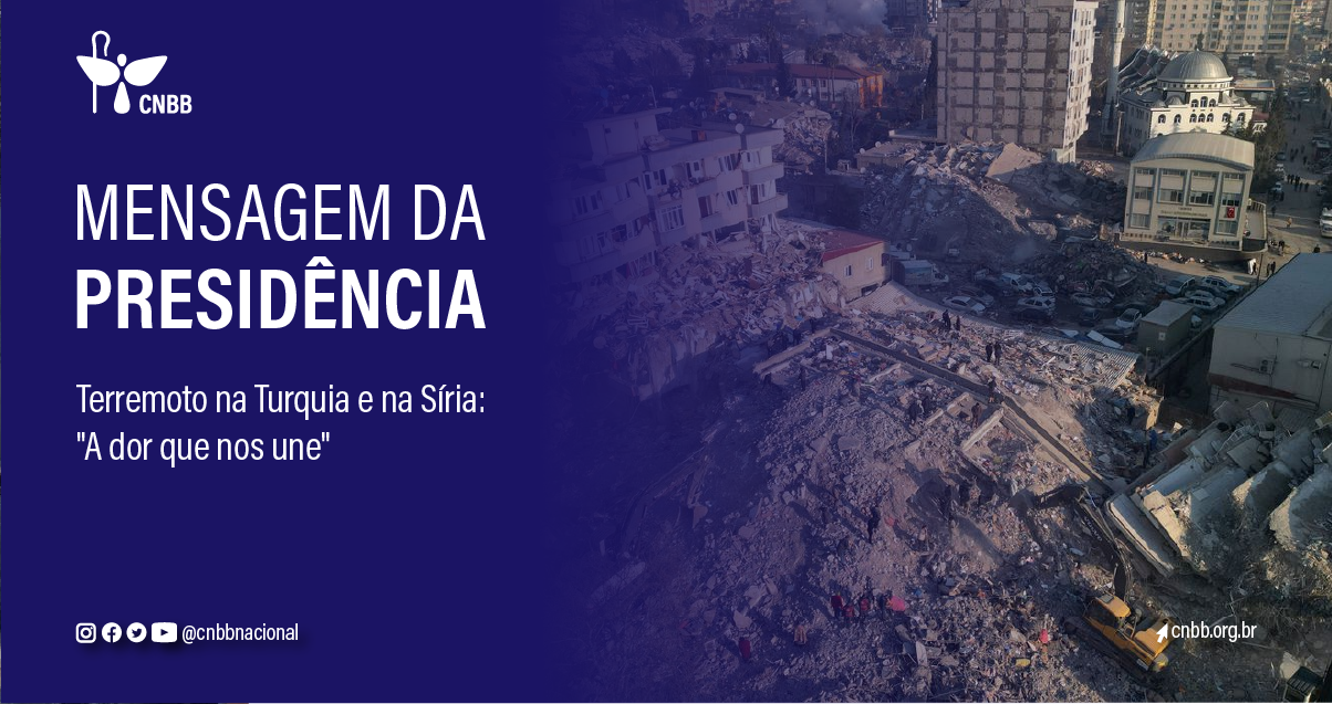 A presidência da Conferência Nacional dos Bispos do Brasil divulgou mensagem na manhã desta terça-feira, 14 de fevereiro, na qual expressa a solidariedade aos atingidos pelos terremotos na Turquia e Síria na semana passada. “Há uma semana, acompanhamos consternados a tragédia do terremoto na Turquia e na Síria, que matou milhares de pessoas, deixando tantas outras desabrigadas e desamparadas, estampando a dor e o desespero de quem perdeu um filho, a família, o próprio lar”, diz um trecho da mensagem.