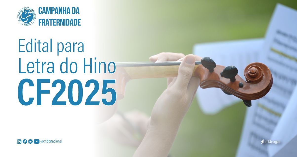 No dia em que a Igreja celebra a festa da Anunciação do Senhor, 8 de abril, a Conferência Nacional dos Bispos do Brasil (CNBB) através da Secretaria Executiva de Campanhas e do Setor Música da Comissão Episcopal para a Liturgia lança o edital do concurso para a letra e a música do hino da Campanha da Fraternidade 2025, que tem como tema “Fraternidade e Ecologia Integral” e o lema “Deus viu que tudo era muito bom” (Gn 1, 31).