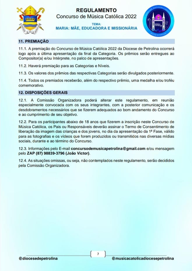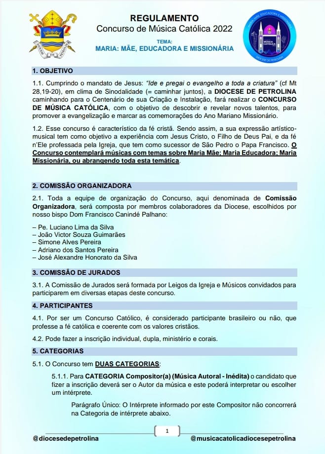 Comissão do Concurso de Música Católica 2022 divulga Regulamento Oficial