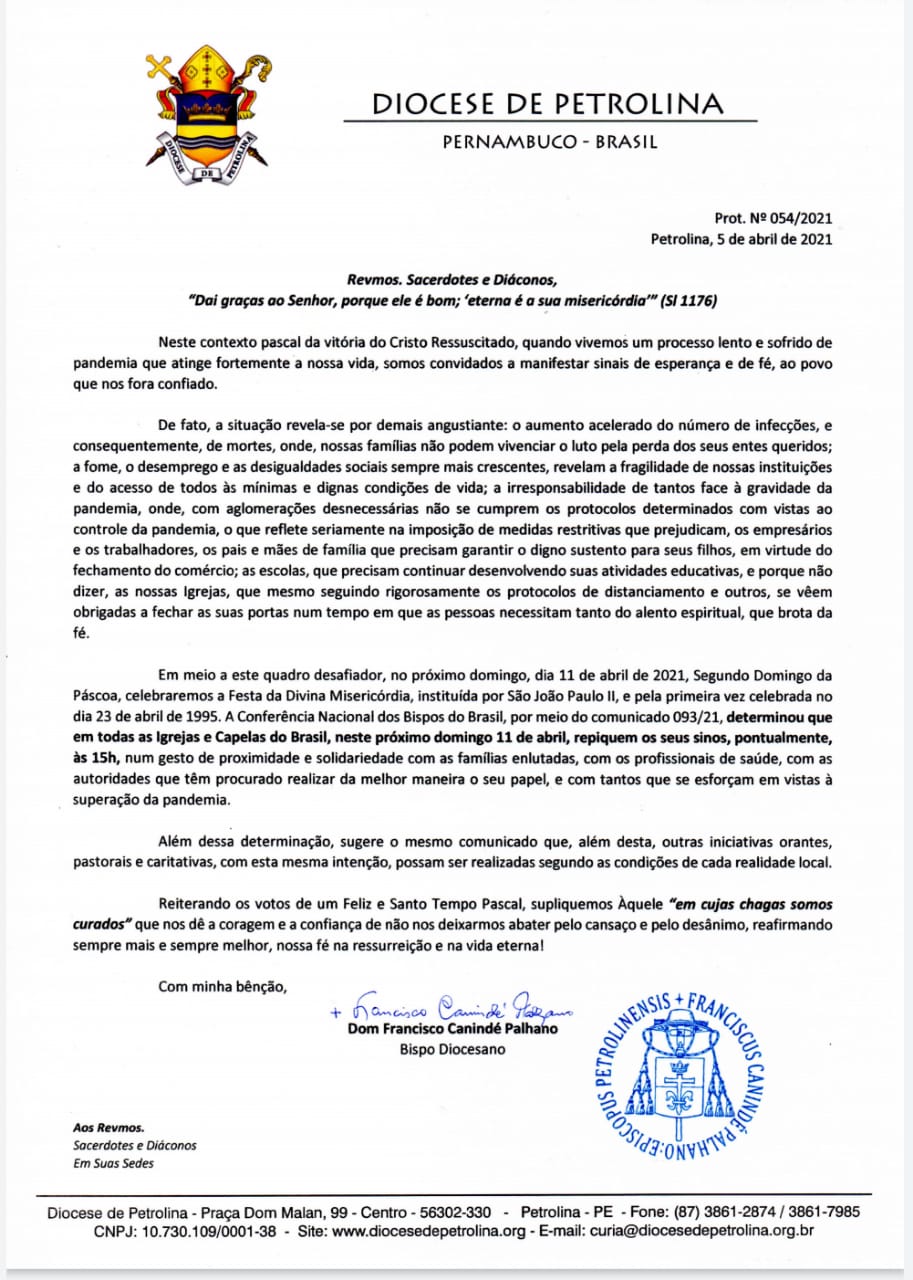 Comunicado de Dom Francisco Canindé ao Clero da Diocese de Petrolina