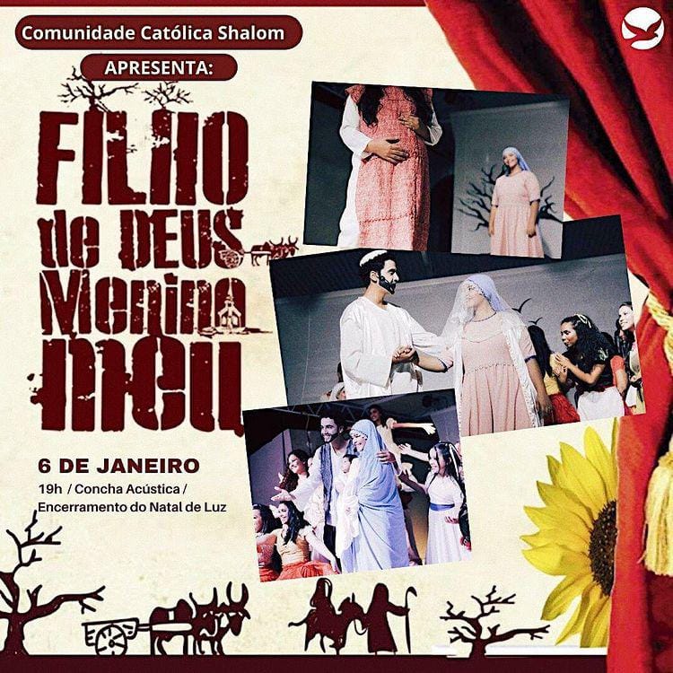 O espetáculo “Filho de Deus, Menino Meu”, que integra anualmente as atividades da Comunidade Católica Shalom, será o coroamento de todas as apresentações realizadas desde 24 de novembro, quando o “Natal de Luz e Renovação” foi oficialmente lançado com a presença de Dom Francisco, do Prefeito Miguel Coelho, de autoridades e de um número significativo de famílias do Vale do São Francisco.