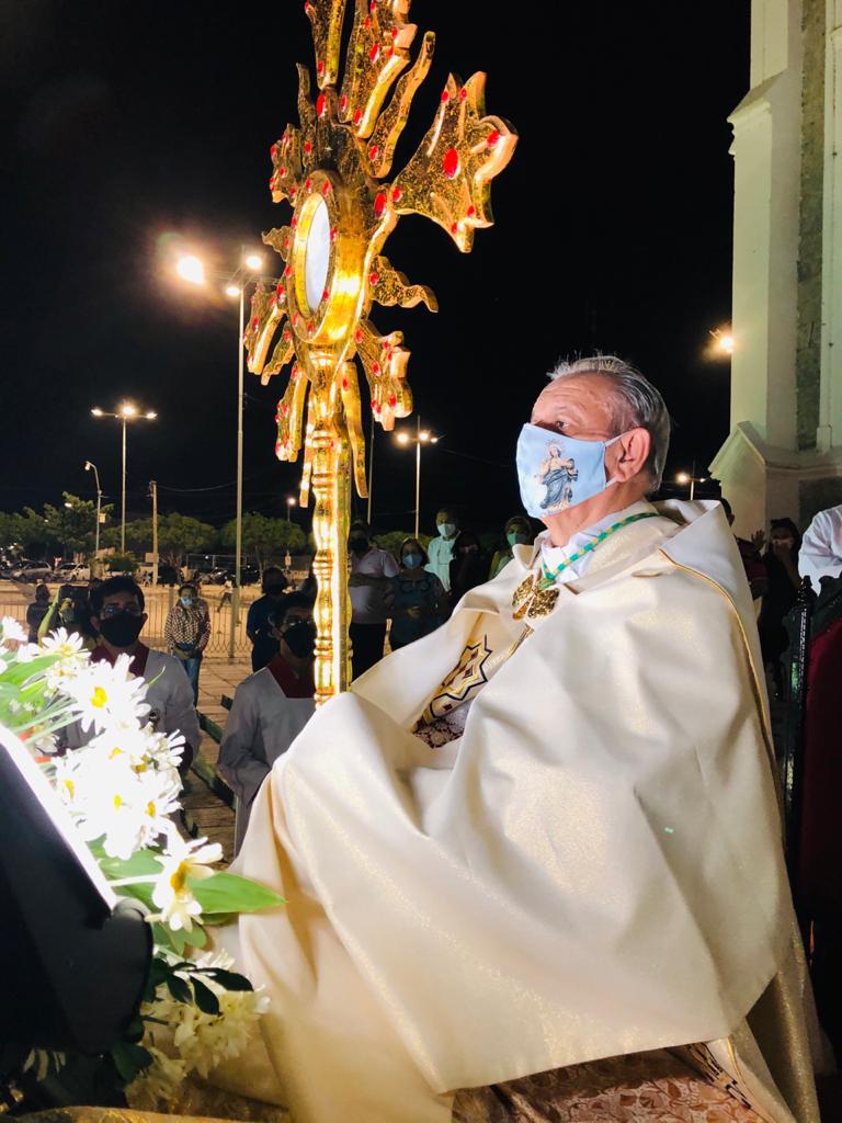 Com efusivas demonstrações de amor e adoração ao Santíssimo Sacramento, a Diocese de Petrolina celebrou, no dia 11 de junho, a Solenidade de Corpus Christi. Em todas as Paróquias, mesmo diante das restrições impostas pela pandemia do novo Coronavírus, as manifestações de fé brotaram do coração católico do povo petrolinense. S.E.R. Dom Francisco Canindé Palhano, após presidir a Solene Celebração Eucarística na Catedral, percorreu, em carro aberto, as principais ruas da Paróquia Nossa Senhora Rainha dos Anjos, com o Santíssimo exposto para a Adoração dos fiéis, que acompanharam a passagem do Divino Pastor na frente de suas casas.