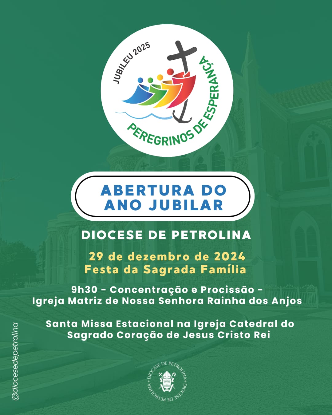 A Diocese de Petrolina, em comunhão com as demais Igrejas particulares do orbe católico, abrirá oficialmente o Jubileu Ordinário no próximo domingo, 29 de dezembro, na Festa da Sagrada Família, conforme indicações da Bula Spes non confundit, do Papa Francisco, e as orientações do Dicastério para a evangelização.