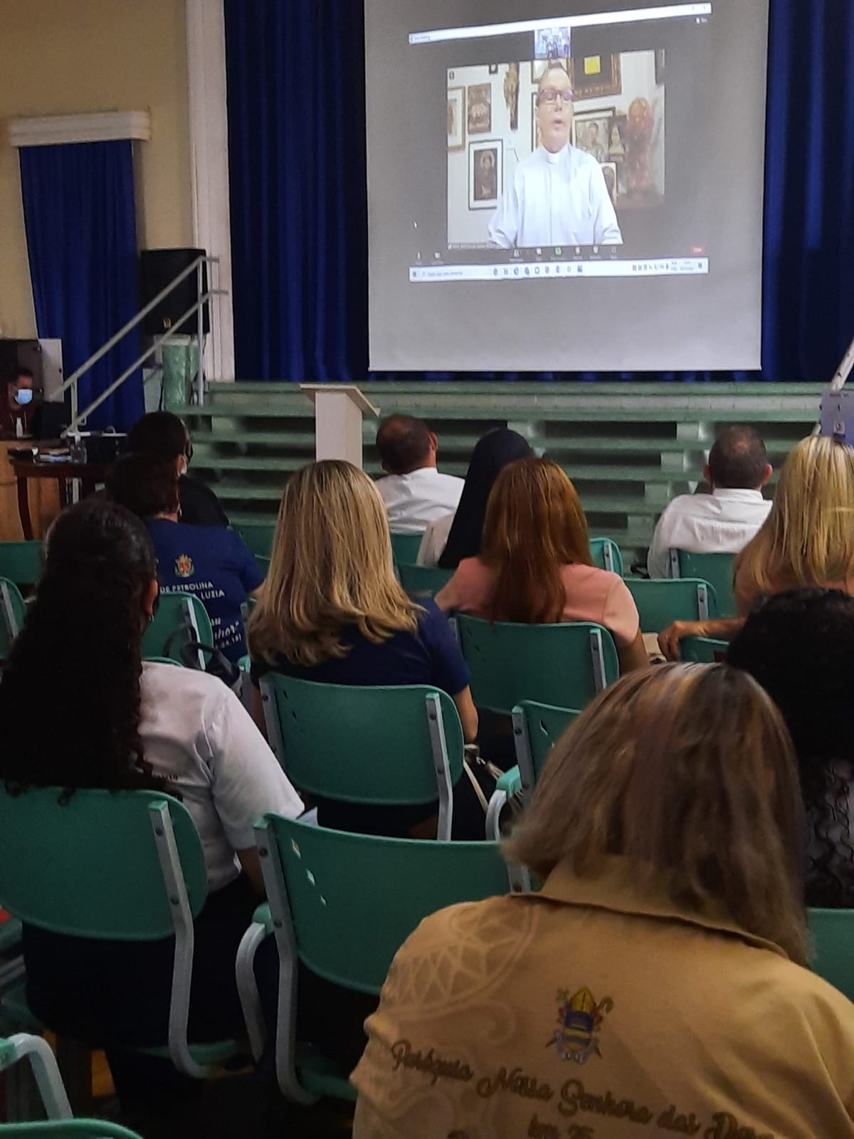 Assessorada de modo virtual pelo Monsenhor Antonio Catelan, Bispo Auxiliar eleito para a Arquidiocese do Rio de Janeiro, a Assembleia Diocesana refletiu acerca do sentido da Sinodalidade, na sua primeira exposição, como um caminho antigo e sempre novo na vida da Igreja. Na sua segunda intervenção, após os trabalhos em grupo, Monsenhor Catelan fez uma abordagem sobre o papel de Maria na história da salvação, através de quatro textos bíblicos, como referência ao Ano Mariano Missionário que estamos vivenciando.