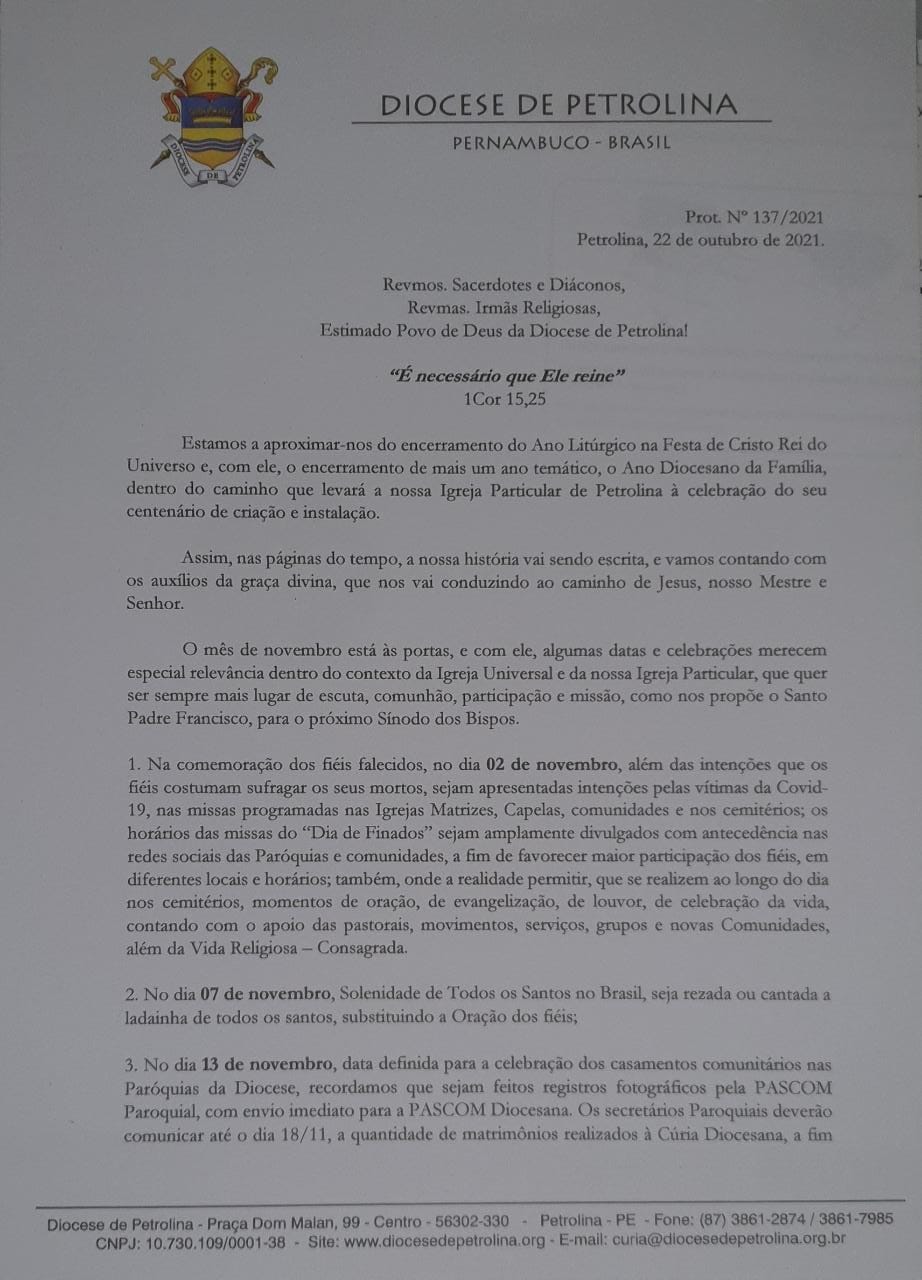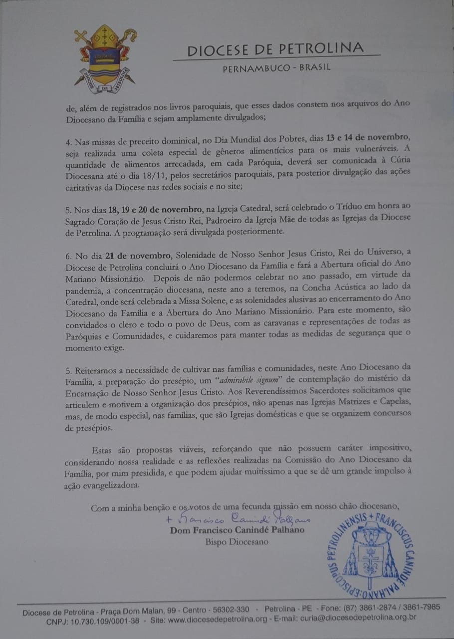 Dom Francisco Canindé Palhano divulga orientações pastorais para a Diocese de Petrolina
