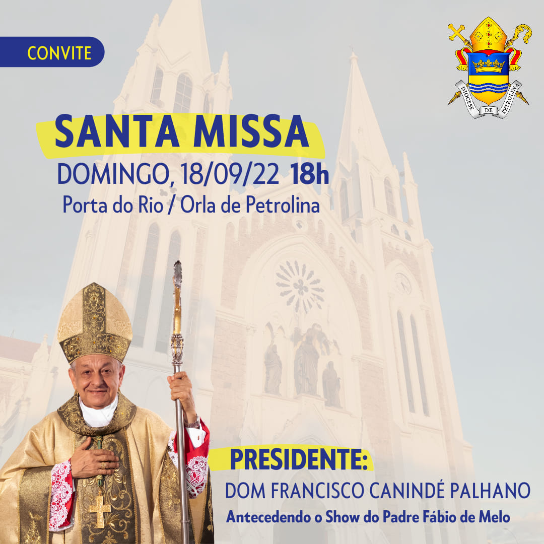 No próximo domingo, 18 de setembro, às 18h, na Porta do Rio/Orla de Petrolina, Dom Francisco Canindé Palhano, Bispo de Petrolina, presidirá a Santa Missa antecedendo o Show do Padre Fábio de Melo, na programação dos 127 anos de emancipação política da nossa sede episcopal.