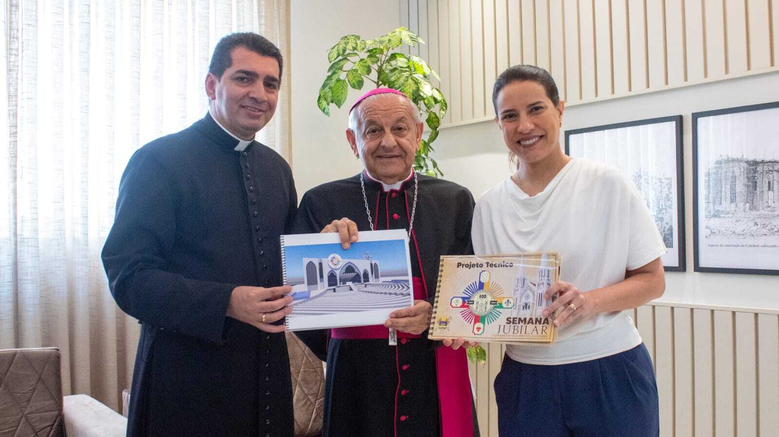 O Senhor Bispo e o Padre Givanildo José, Coordenador do Jubileu Centenário, apresentaram a programação da Semana Jubilar, de 20 a 26 de novembro de 2023, o projeto técnico que foi elaborado, bem como as demais iniciativas para que esta Igreja Particular celebre tão significativo momento de sua caminhada com o apoio do Governo do Estado e de instituições parceiras