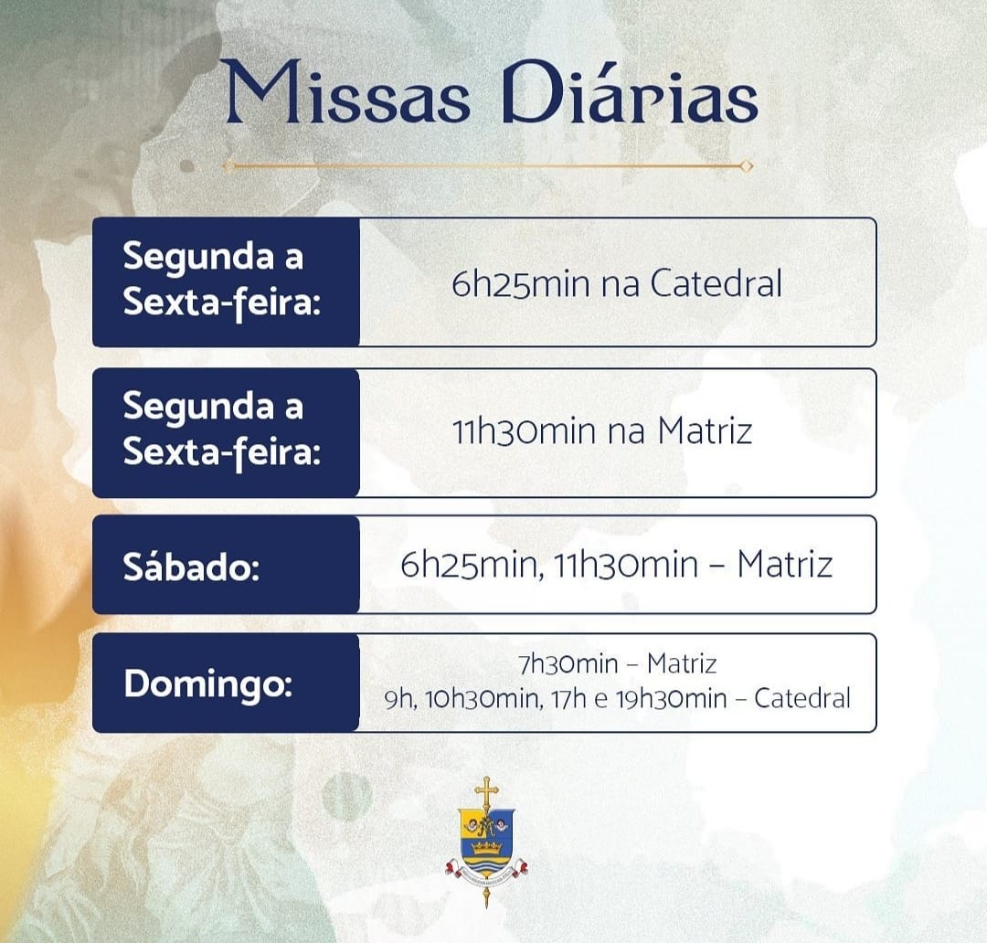 Durante a Novena da Rainha dos Anjos, a programação das celebrações eucarísticas será a seguinte: