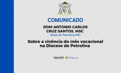 Aproximando-nos do mês de agosto, Dom Antonio Carlos divulgou, na tarde desta segunda-feira, 22 de julho, orientações para a vivência do mês vocacional na Diocese de Petrolina. O comunicado é dirigido aos bispos eméritos, sacerdotes, diáconos, religiosos, seminaristas, vocacionados e ao povo de Deus dos 8 municípios que compõem esta Igreja Particular.