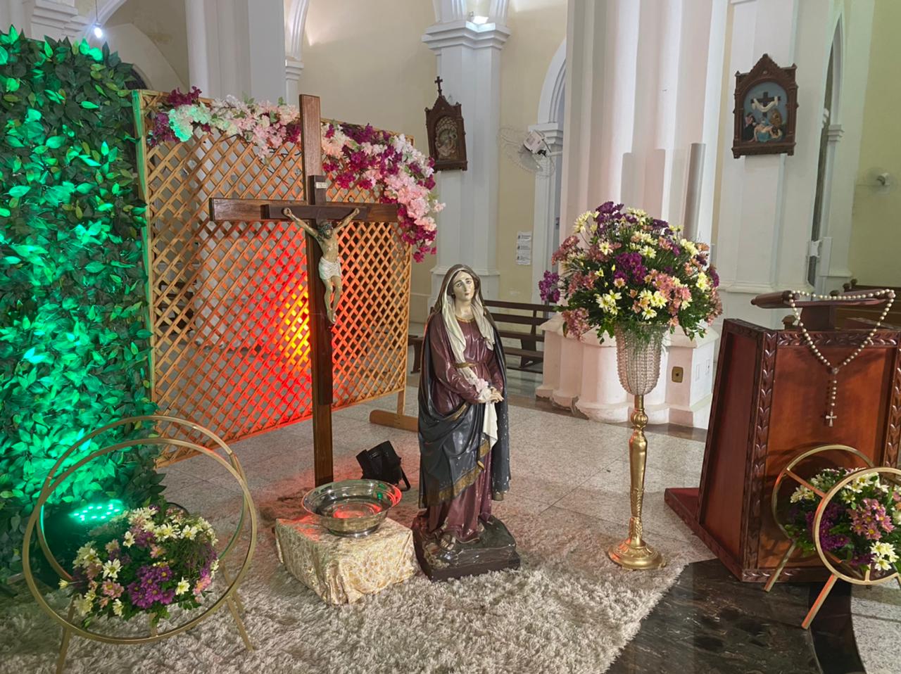 Adriana Fernandes, integrante da Pastoral Familiar, refletiu sobre os mistérios dolorosos, cuja contemplação fazemos com Maria, aquela que acompanhou o mistério da vida de Jesus, inclusive os momentos de dor.