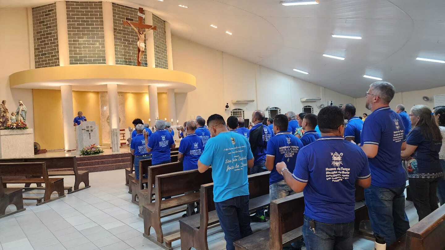 Em clima de devoção e recolhimento, a celebração do Dia Municipal dos Homens do Terço contou com a recitação do Santo Terço, integrando os representantes das Paróquias presentes e, sem seguida, a Celebração Eucarística presidida pelo Padre Sérgio Fernando, Diretor Espiritual dos Movimentos Marianos.