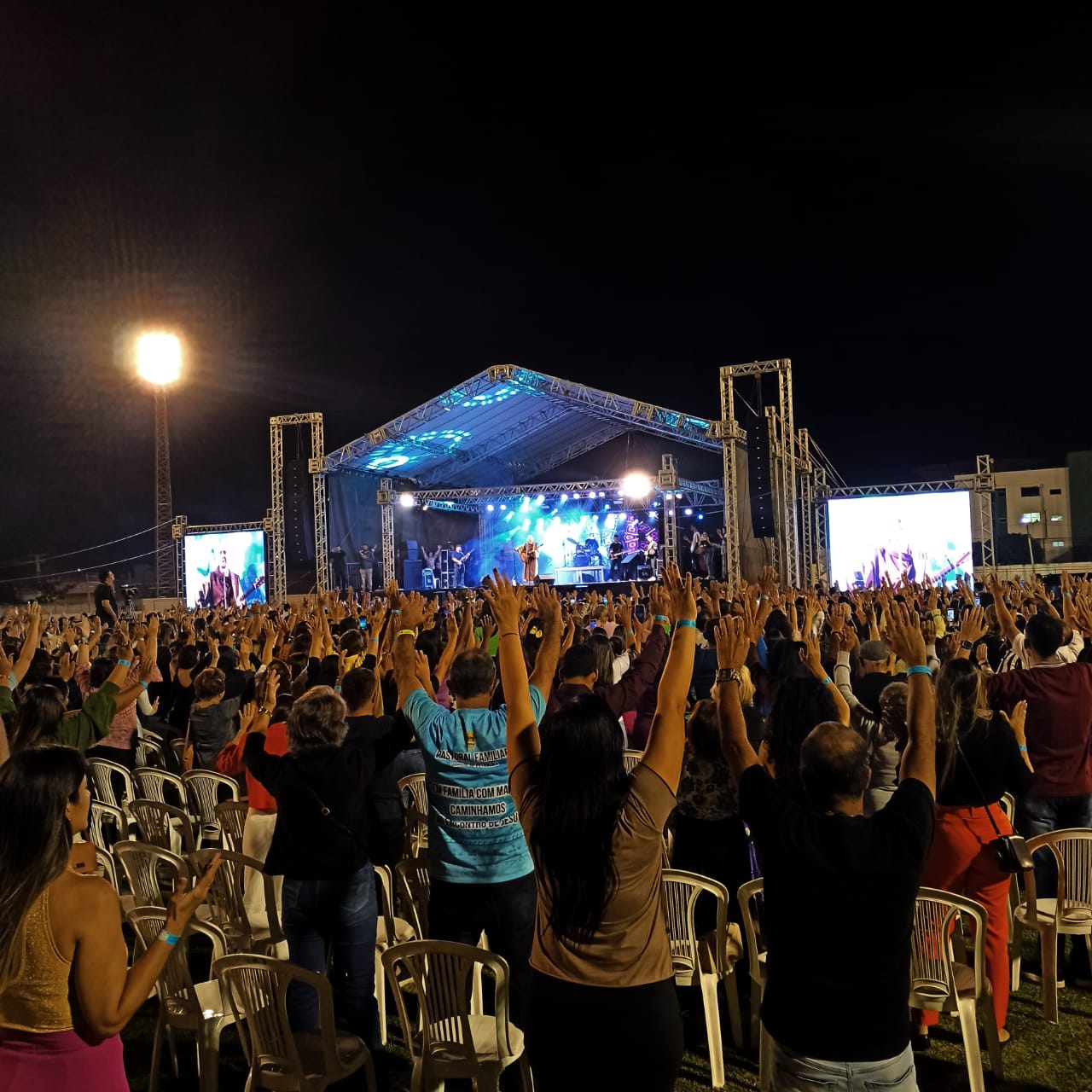 Na terça-feira, 13 de junho, no Estádio Municipal Paulo de Souza Coelho, centenas de fiéis participaram da Noite de bênçãos com Frei Gilson, um dos ícones da evangelização através das mídias sociais e dos shows que realiza, no Brasil e no mundo.