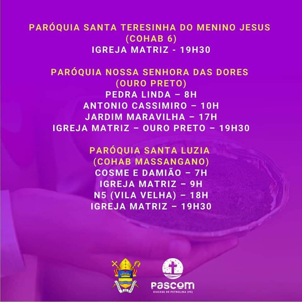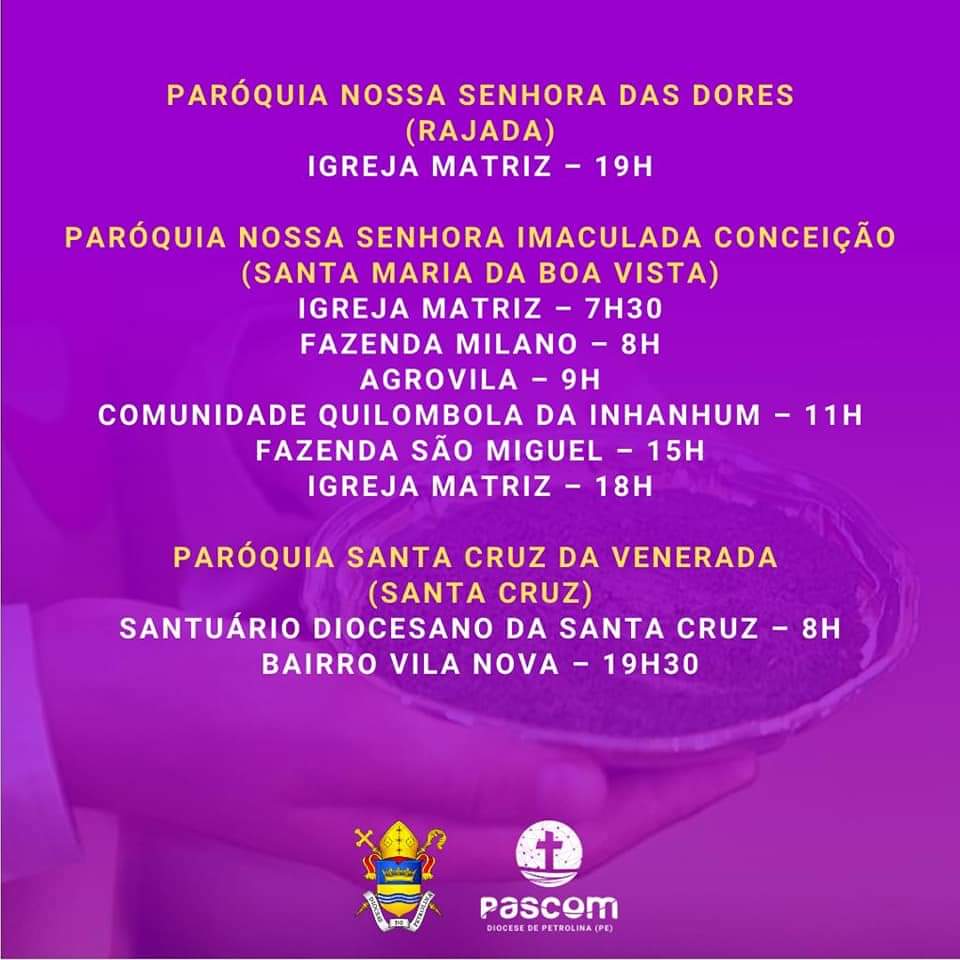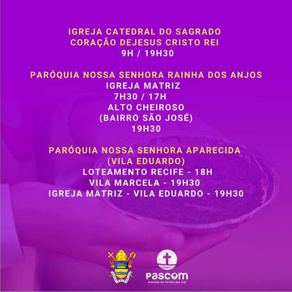 Programação da Quarta-feira de Cinzas na Diocese de Petrolina