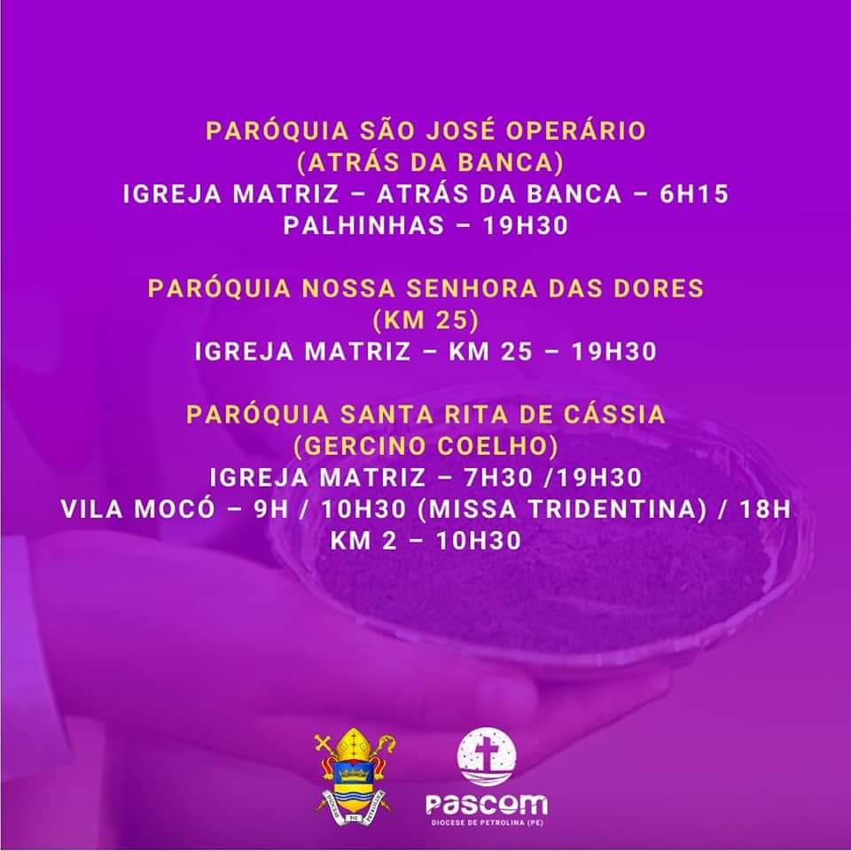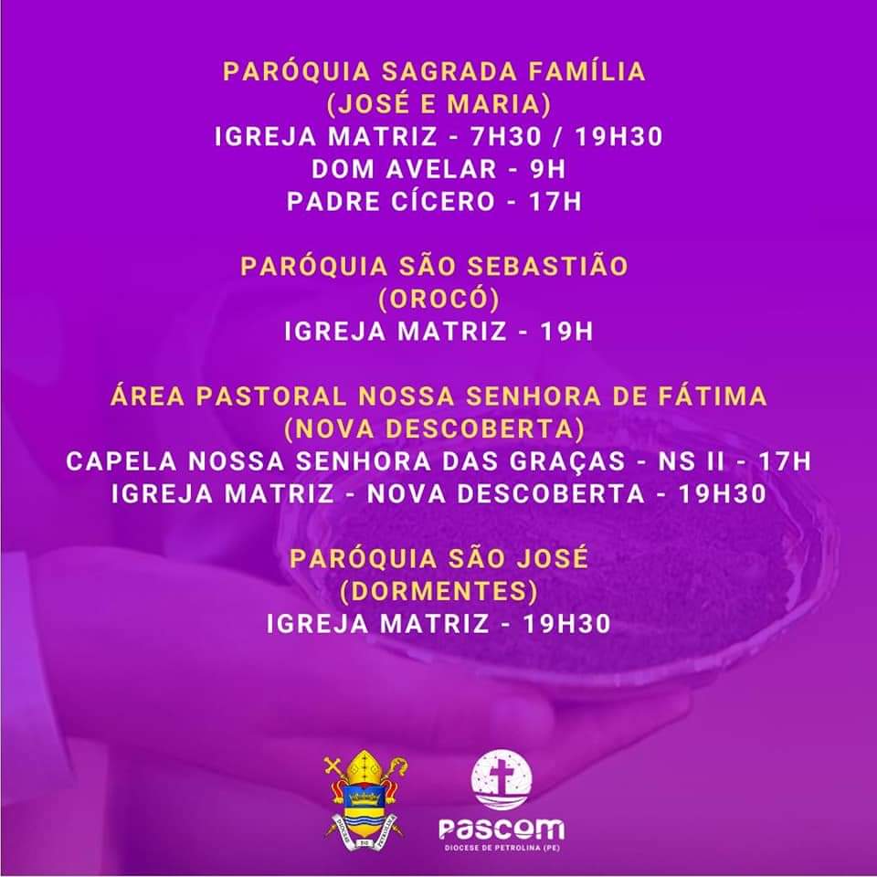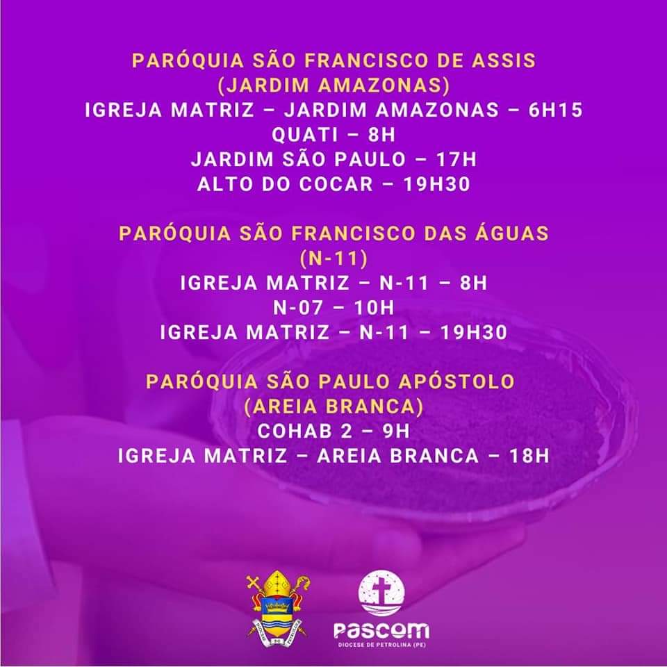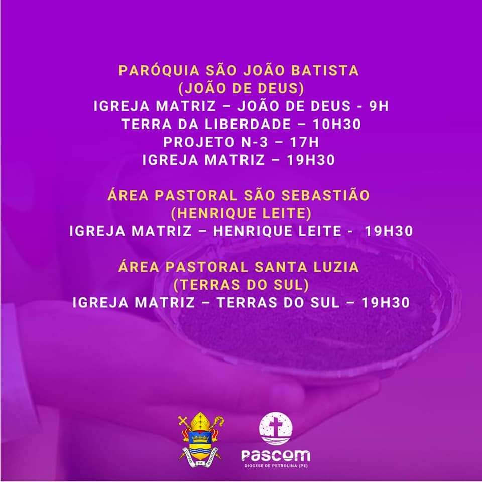Programação da Quarta-feira de Cinzas na Diocese de Petrolina