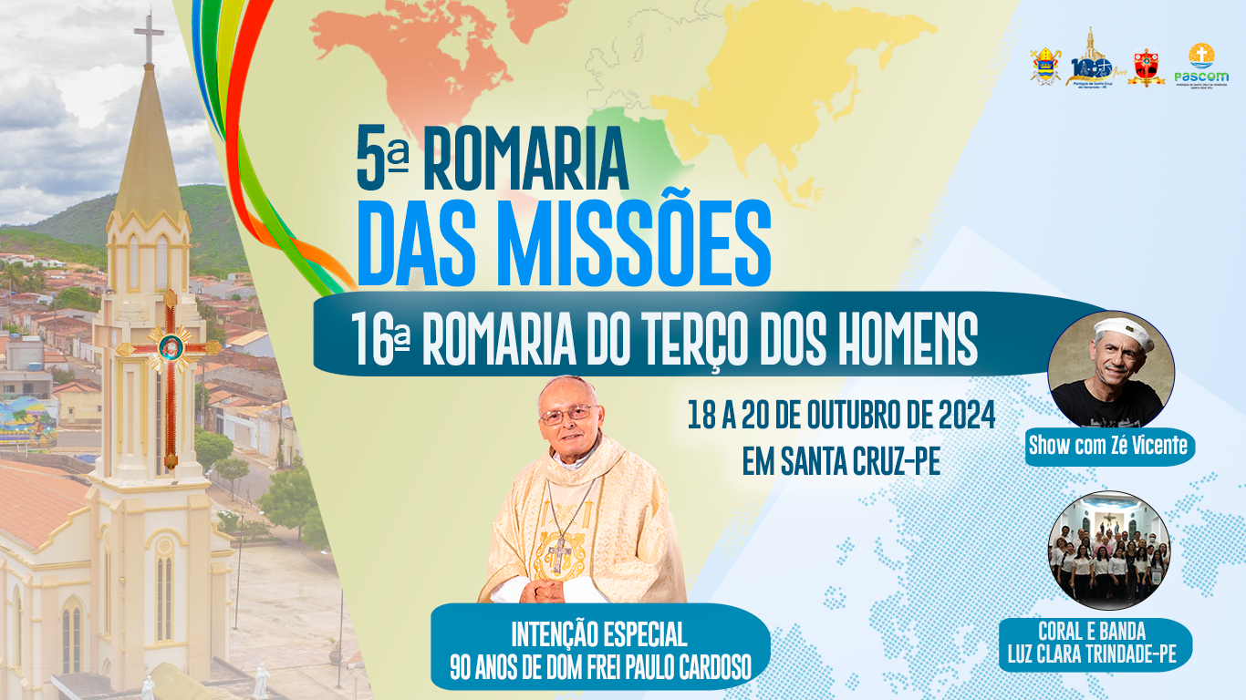 De 18 a 20 de outubro, a cidade de Santa Cruz acolherá duas Romarias: a 5ª Romaria das Missões e a 16ª Romaria do Terço dos homens. Dentre as intenções especiais, a celebração dos 90 anos de Dom Frei Paulo Cardoso da Silva, Bispo emérito de Petrolina, um grande missionário que impulsionou as Romarias em nossa Diocese.
