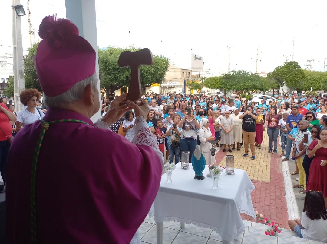 No início da tarde, no CEMAM, a comunidade diocesana acolheu a imagem e a relíquia de Santa Dulce, o “Anjo bom da Bahia”, doadas por sua comadre, a Senhora Vera Lúcia. Na Quadra da instituição, com a presença de Dom Francisco Canindé Palhano, os fiéis recitaram o Santo Terço, acompanharam apresentações da Banda do CEMAM, e acompanharam as exortações do Senhor Bispo. O Padre Francisco Ferreira, pároco da Paróquia de Santa Rita de Cássia, passou com a relíquia diante de cada fiel presente.